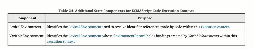 执行上下文通常关联的词法环境有词法环境LexicalEnvironment 和 变量环境VariableEnvironment